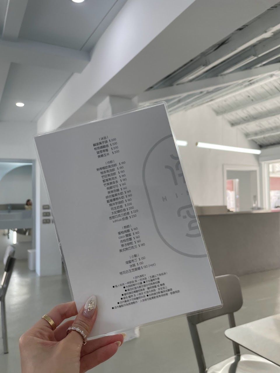 開門進去就聽到老闆娘甜甜的招呼聲!加上整體素淨的裝修風格,還沒吃到冰品就已經覺得一陣涼! 消費方式是一人一杯飲品或一份冰品為低消,以價格來說,不便宜,但以觀光景點而言,也就覺得還好! 餐點搭配挺特別,剛端上桌會有種「蛤…就這樣」的失落感,其實商品很漂亮,可視覺上挺小一份,但一挖入喉,滋味很棒! 臨走前老闆娘問口味如何,我說非常棒,但心裡想說…份量太少呀⋯⋯哈哈…沒吃過癮