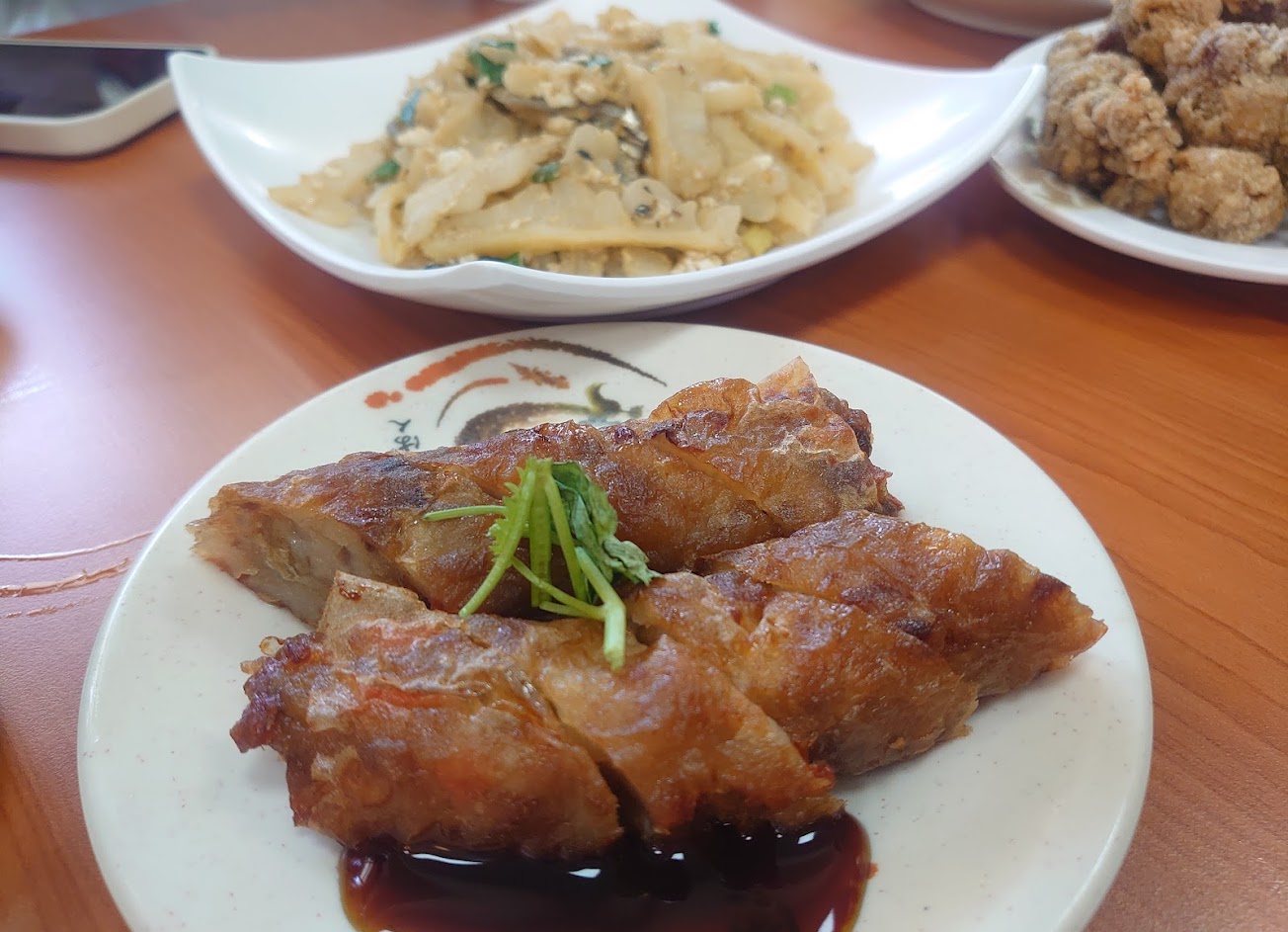 排骨湯麵和肉捲,肉捲好吃但剛出爐很燙