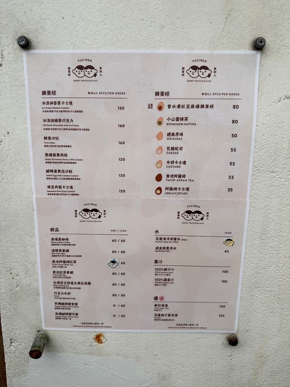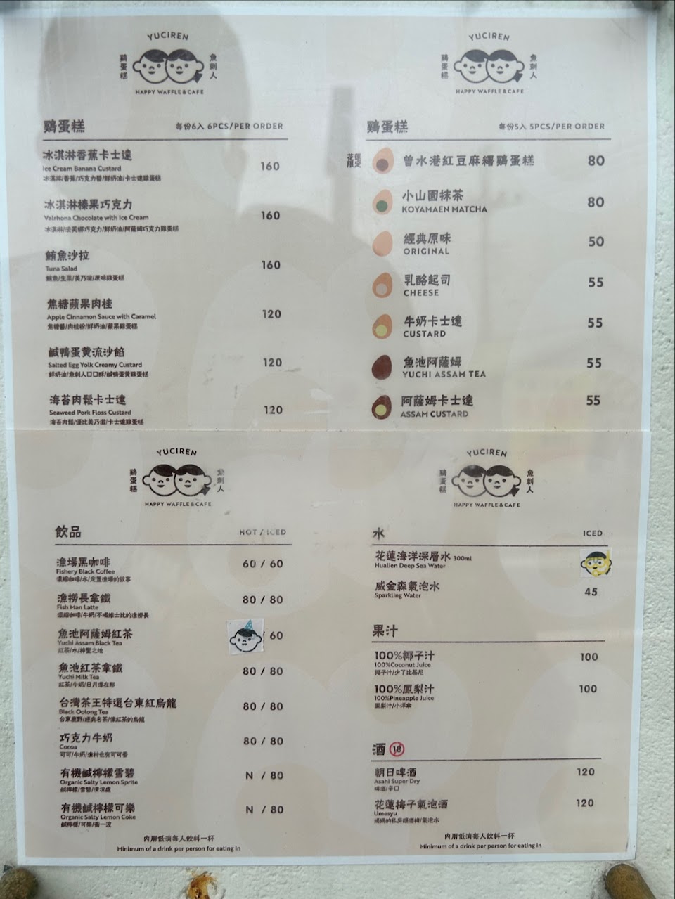 內用低消是一杯飲品,記得先找位置再點餐,洗手間在斜對面的建築後側。