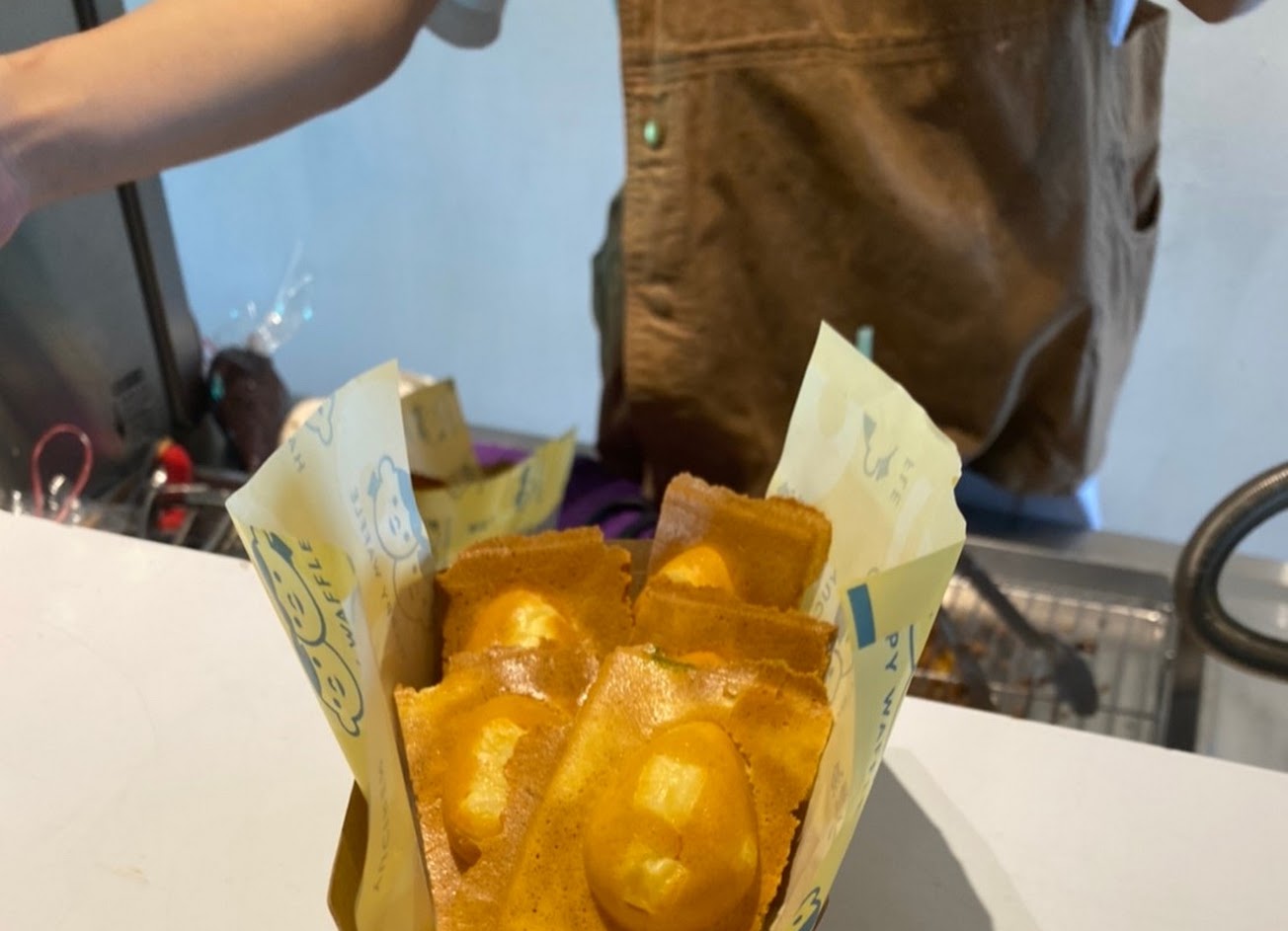 跟傳統雞蛋糕味道不一樣,我覺得吃起來還蠻香也蠻脆的!