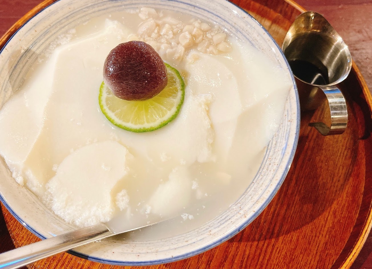 本間店位置距離佳興冰果室很近, 用導航很容易找到, 所以來這基本可以一食二鳥, 兩間都走走吃吃不一樣的冰品. 此次我們點了花生與珍珠豆花還有菜單上推薦的麻糬豆花, 這兩種基本款的都很好吃, 湯頭不甜也可襯托出豆花香味. 而麻糬豆花內有一顆麻糬, 個人吃完覺得那顆麻糬如果先再吃豆花會整碗沒有味道, 建議先把豆花全部吃完再吃麻糬會比較好吃. 總之這是間具有特色的豆花店, 內用會感覺像是在學校用餐的懷舊氣氛. 很值得推薦參訪.