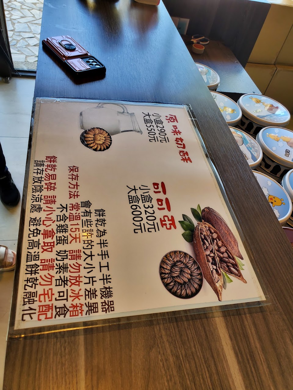餅乾很好吃很鬆軟,櫃檯人員也拿出試吃給我們享用,鐵盒很可愛