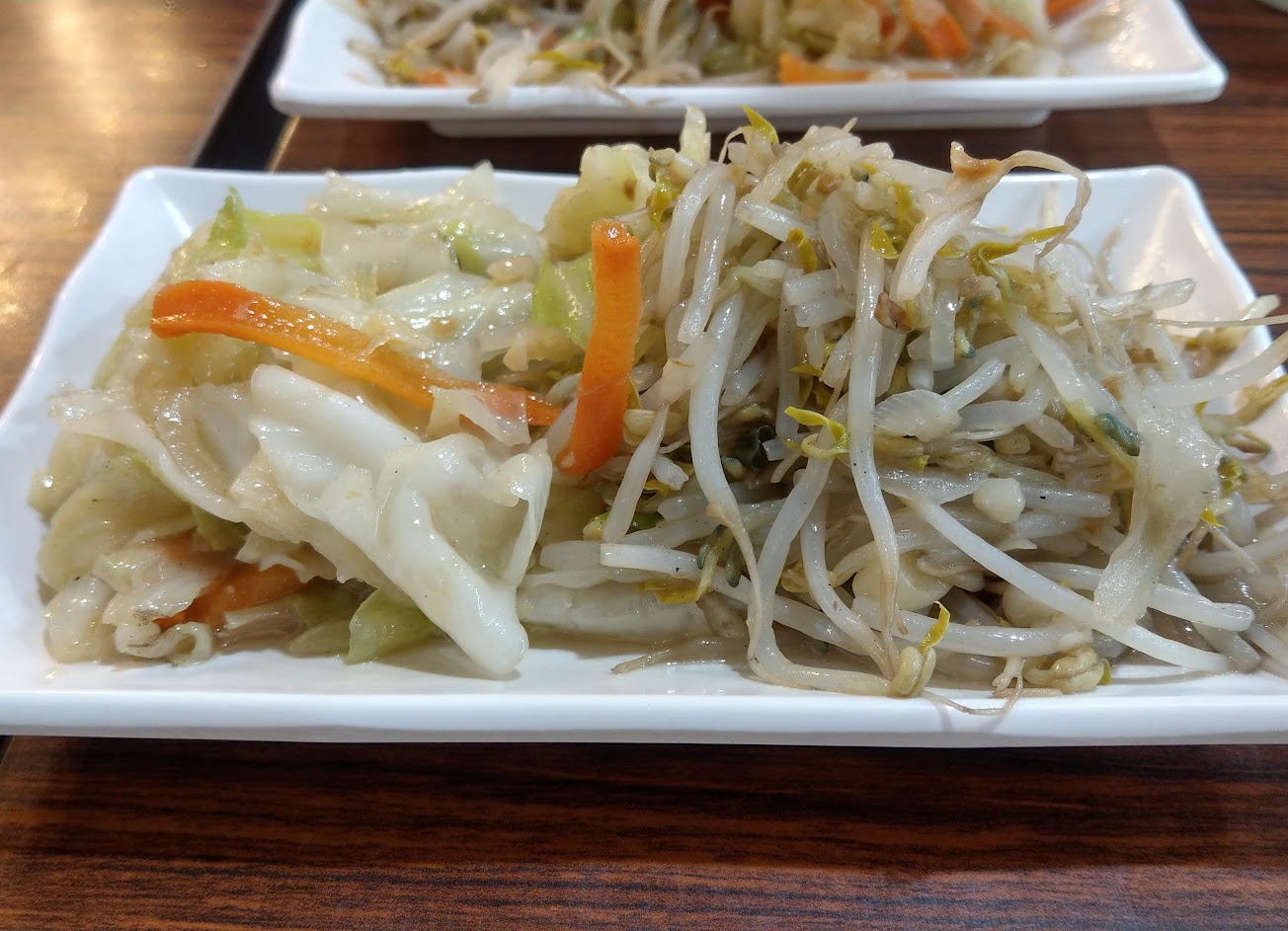 高麗菜、豆芽菜、白飯份量多