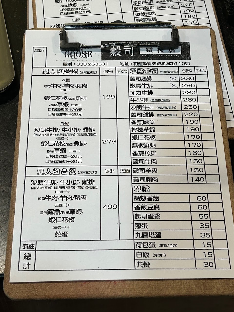 2024最新在地推薦餐廳的菜單_穀司鐵板燒的菜單、圖片