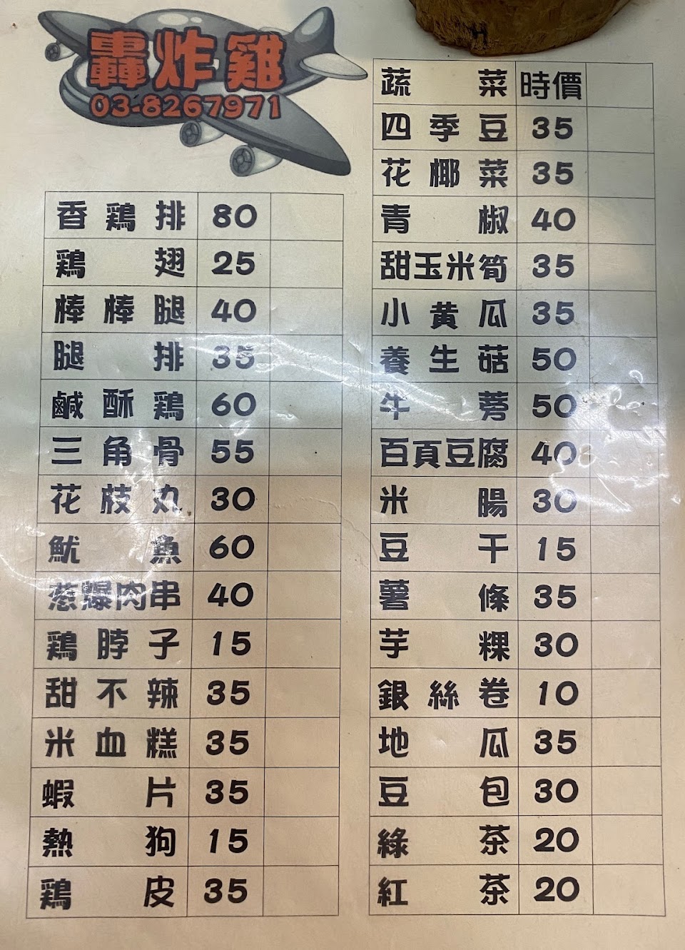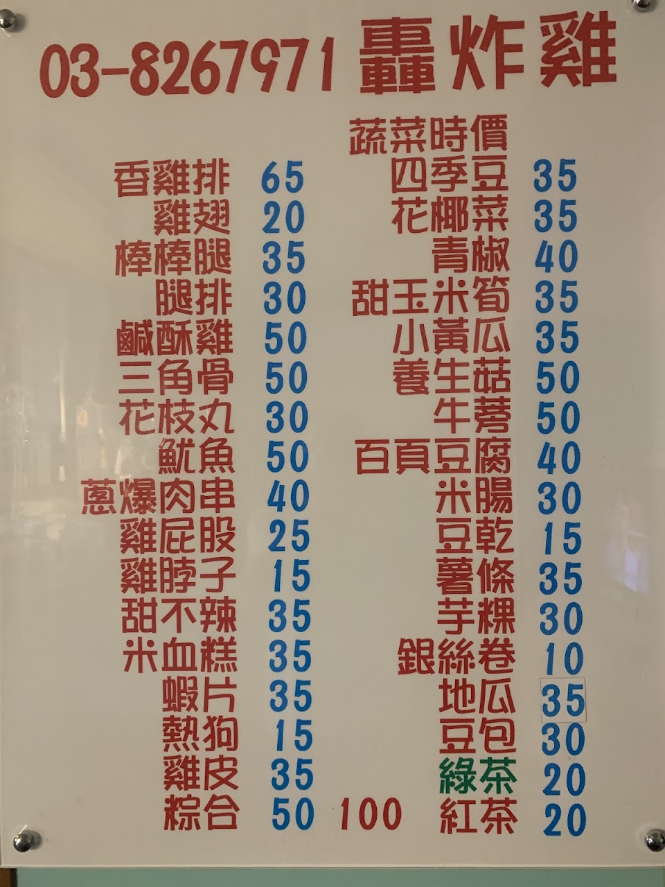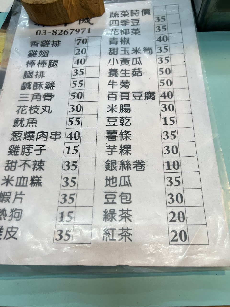 看了大家推薦買了炸牛蒡真的很好吃欸我好愛,牛蒡不是片狀是一根一根裹粉炸,吃起來外皮有酥又有牛蒡味,一份50元蠻多的~其他還買了雞翅米血糕鹽酥雞,魷魚豆干小黃瓜跟四季豆都好吃不雷,九層塔給蠻多的~價位有比西部地區稍高一些但吃了還是會回味想再去吃~