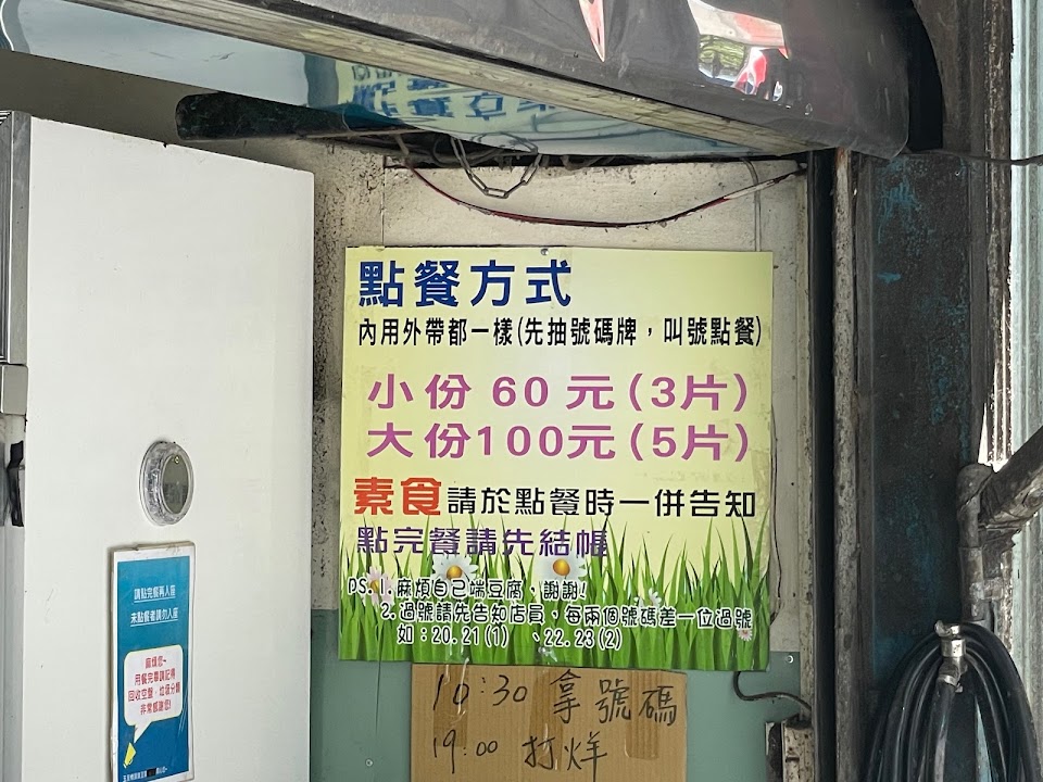 營業時間雖然寫10:30 但實際開賣是11:00 記得要先抽號碼牌 然後可以到對面公園等候 整體動作速度算快 18號等30分鐘左右 配料很多,吃起來清爽 蘿蔔絲泡菜酸脆解膩 九層塔味香濃加分 炸豆腐本人外酥內嫩 我喜歡再配個豆奶,超棒 不過,用餐完畢 衣服也是餘韻猶存XD