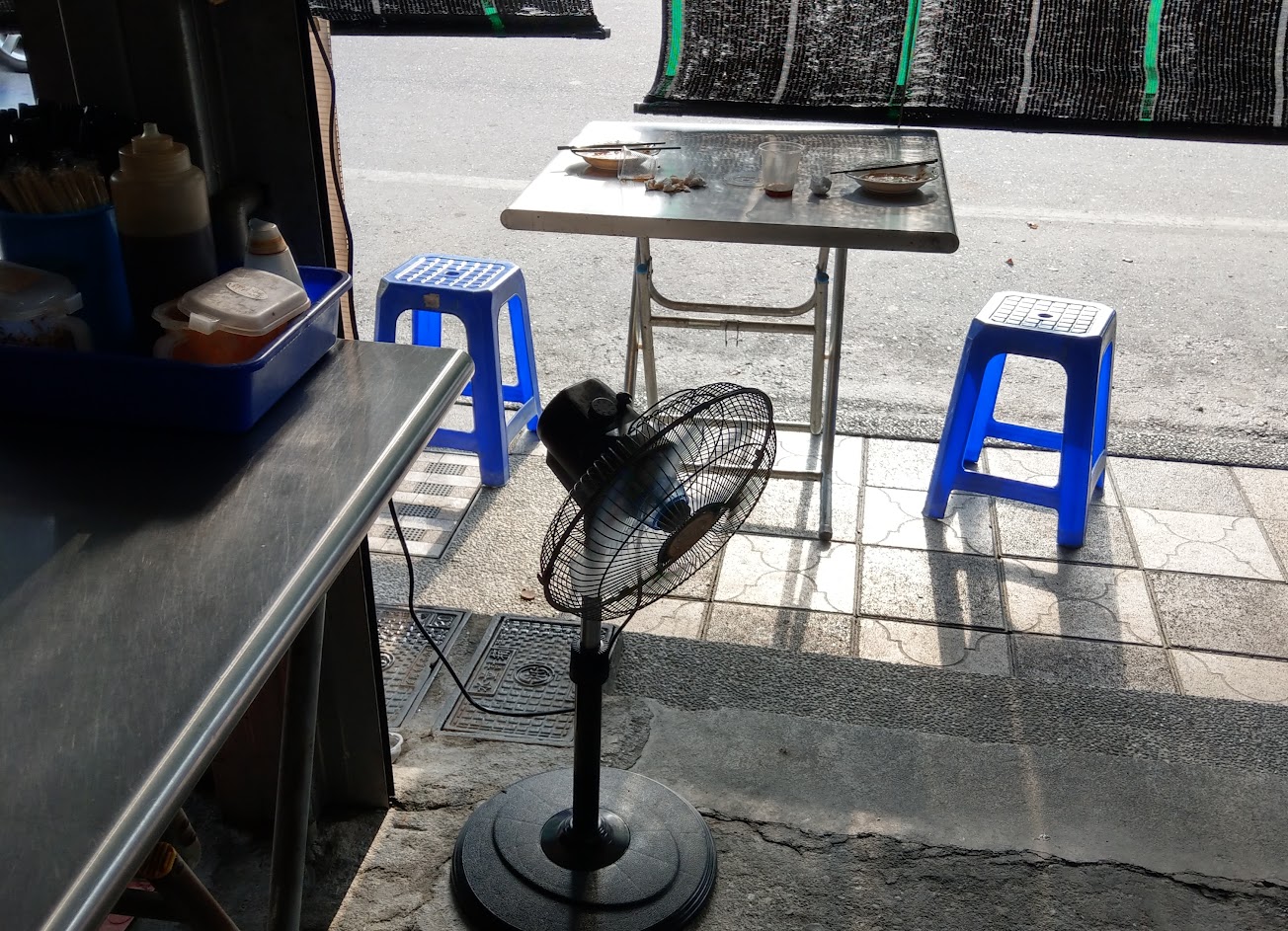 夏天西曬下的鐵皮屋,客滿的用餐區裡,只給顧客一台吹著熱風的小電扇,本來美味也都食之無味