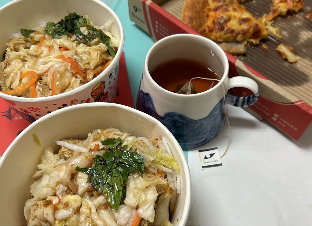 炒麵份量驚人!小鳥胃請勿挑戰⋯⋯❌ 臭豆腐屬於外酥內軟,而且真的好吃也夠臭(吃到我頭皮都臭?) 紅茶不會死甜,好喝? …