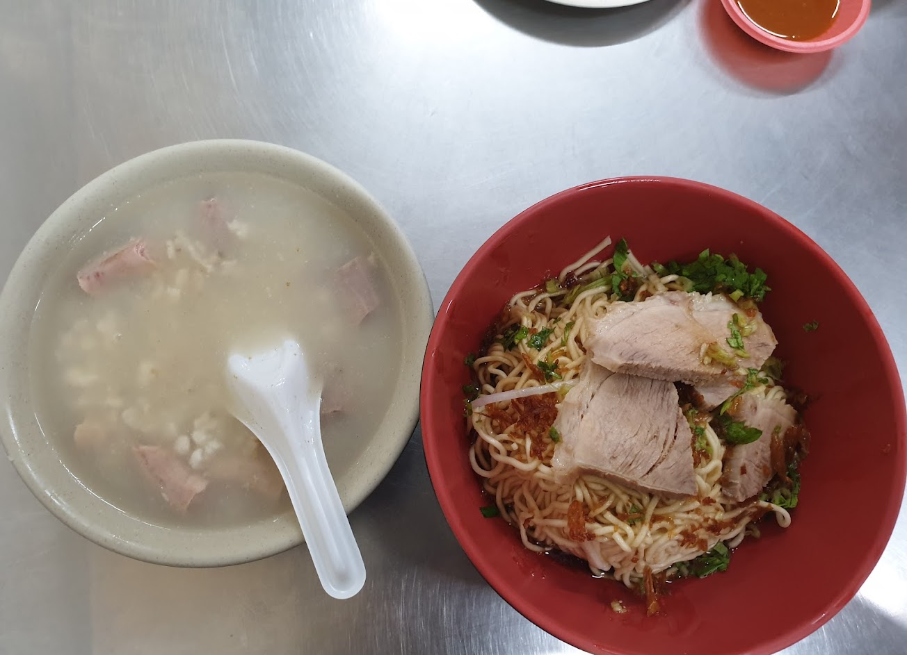 基本上就是油麵淋醬汁再加豬肉塊,長得很像切仔麵,但麵量大,吃的很飽。