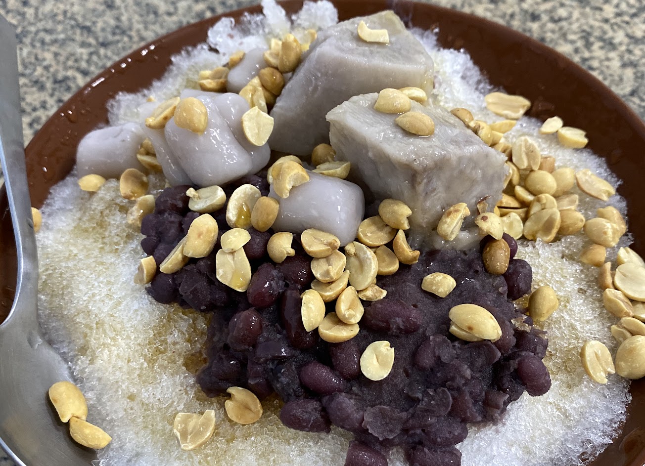 傳統冰店,4種料刨冰50元,冰分量足,但糖水不甜,芋頭軟綿。