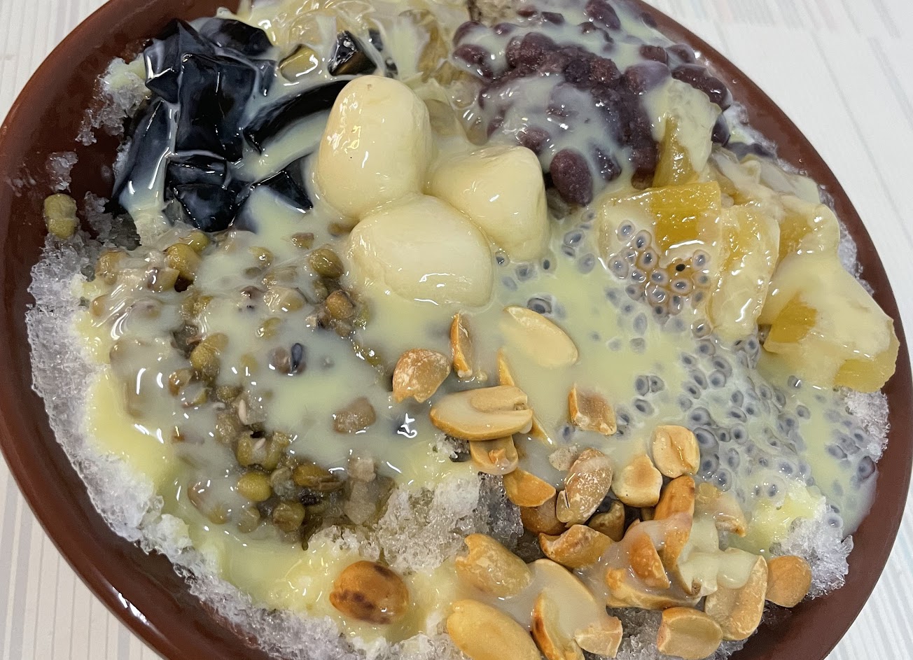 我自己這碗口感方面布丁、芋圓還好,仙草、米苔目都很不錯,煉乳加很多,煉乳也很好吃。