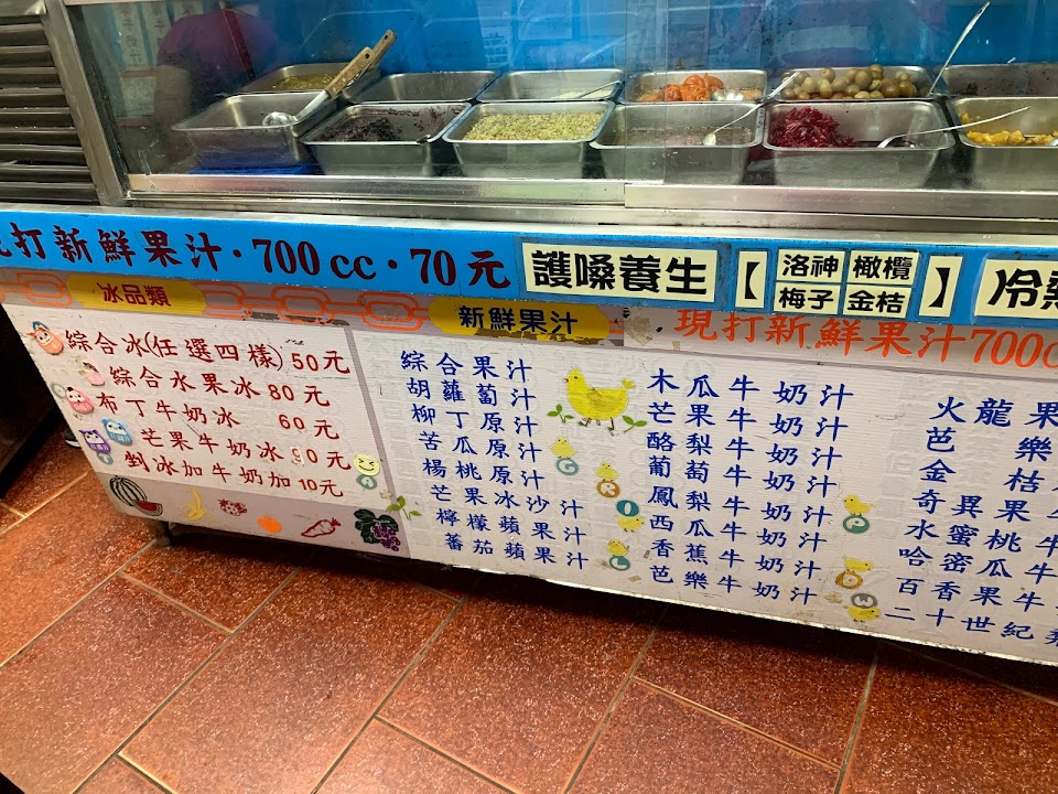 在玉里圓環附近是比較傳統的冰店,內用有位置但空間不大,位子稍雜亂。人滿多的但幾乎都外帶不需要等很久。店內除了賣冰之外也有賣果汁跟水果盤,價錢都還滿實惠的。冰的料跟現在一般的冰店比較不一樣,都是偏比較傳統的蜜餞類居多,也有仙草、愛玉、豆類。想懷念傳統口味可以來這邊試試?? …