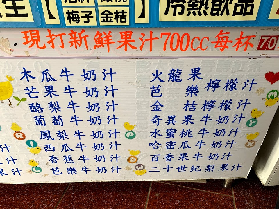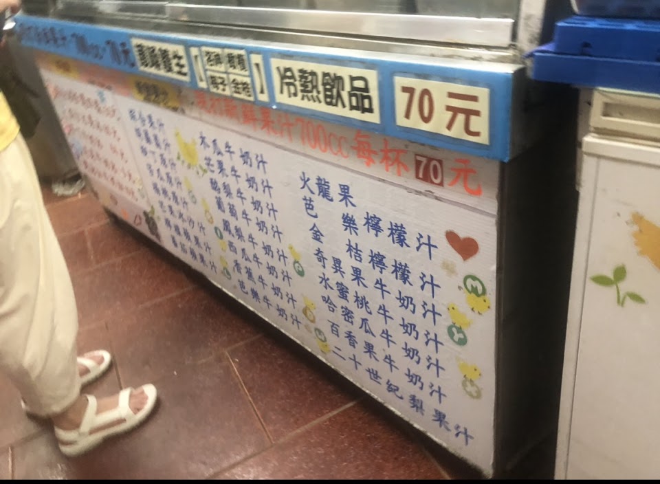 老闆已經開店五十多年,用料不手軟,我家老公愛喝木瓜牛奶沒有加水,喝了超飽,我的則是綜合果汁(火龍果、鳳梨、西瓜….等)實在太好喝了,那比例是什麼,我很好奇,不過看著阿姨信手拈來,削好的水果冰凍後,各種隨意加幾塊,打著就混和成一杯超好喝的果汁。