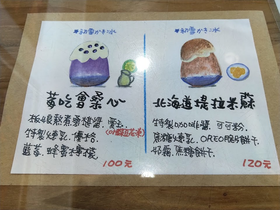 冰的品項很豐富,配料和調味也很多樣,但整體味道並不會因此雜亂衝突或過於甜膩,相反地是非常清爽消暑的冰品,各種味道很和諧地搭配在一起,完全不會蓋過主線。雖然冰化得算快,即使如此也會讓人想當飲料喝完。店內視覺上有用心,菜單設計也很精美,全都是很可愛的手繪風格,如果每道冰品的視覺設計包括餐具托盤乃至於配料能更簡潔就完美了。價位親切,老闆們也親切,若來玉里真的值得花點時間進來坐坐。