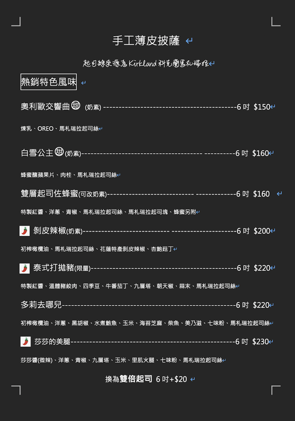 用心的好店,熱咖啡有另外準備一小杯冰咖啡讓顧客體驗不一樣溫度的味覺感。pizza的餅皮吃的到香韌,剝皮辣椒(鹹)和oreo(甜)都有特色值得一試,總匯的玉米味蓋過其他味道我覺得比較普通。