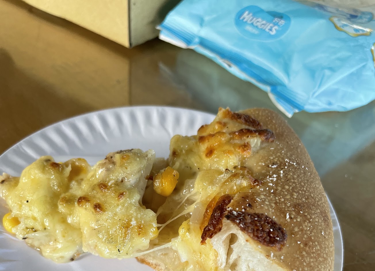 老闆用料不手軟洋蔥、玉米、火腿及起司鋪好鋪滿,生洋蔥咬起來清脆加上玉米粒整個很有口感,火腿量放的剛好不會蓋掉其他食材的味道,這樣的搭配吃起來很不錯!
