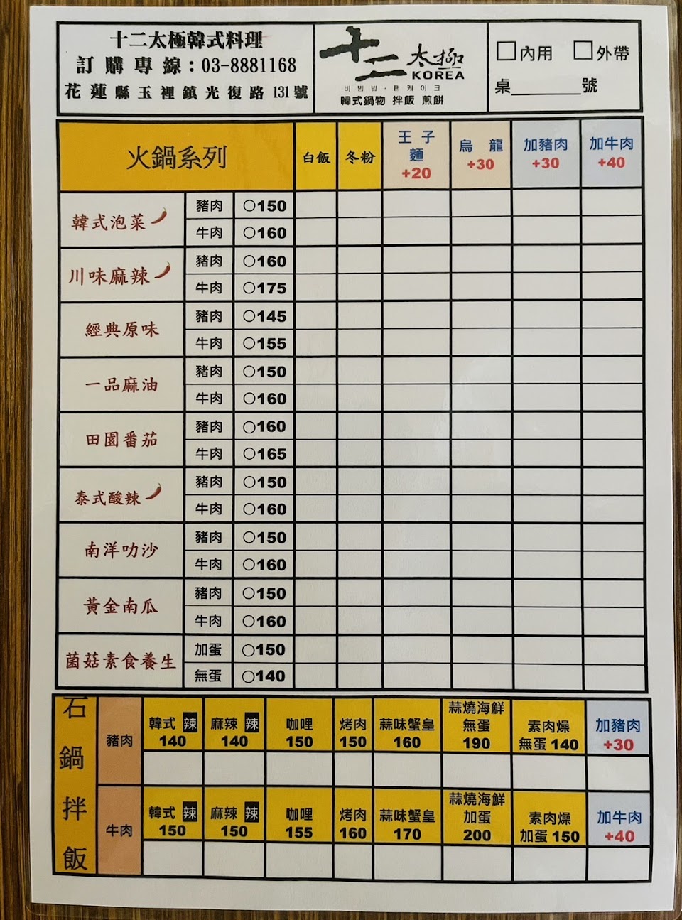 2024最新在地推薦餐廳的菜單_十二太極韓式料理玉里店的菜單、圖片