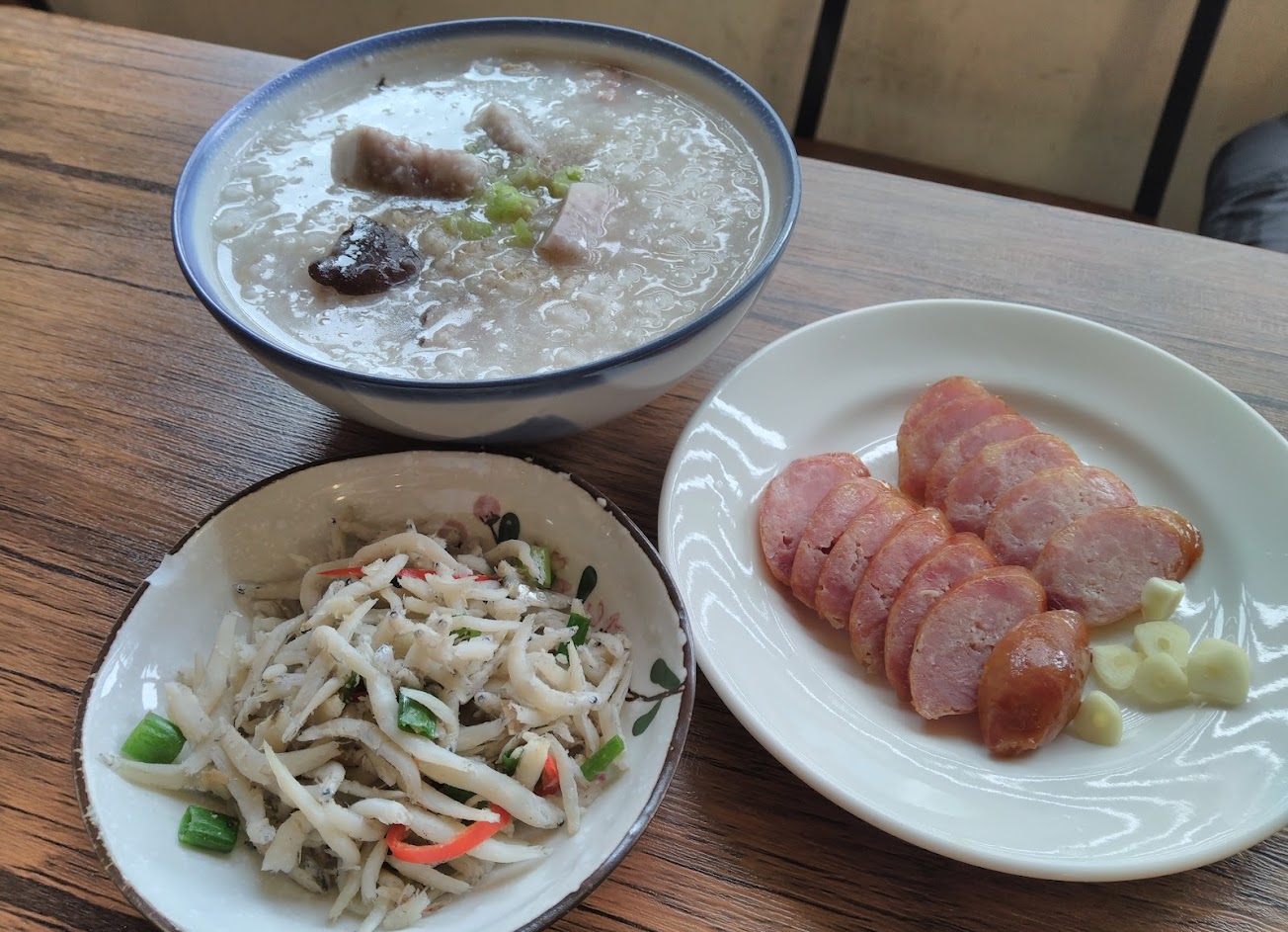 網路看到菜單內有粉蒸肉,立馬決定要吃,但是粉蒸肉卻是最不好吃的(調味淡肉骨皆軟但像肉渣沒肉香肉汁),失望到連照片都沒照,其餘粥菜普普,另外感嘆物價高漲,吃個粥也超過200元了,但是氛圍不錯,環境也乾淨