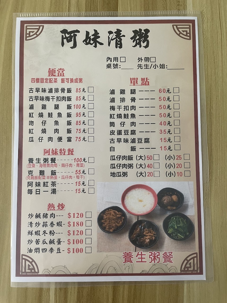 2024最新在地推薦餐廳的菜單_阿妹清粥的菜單、圖片