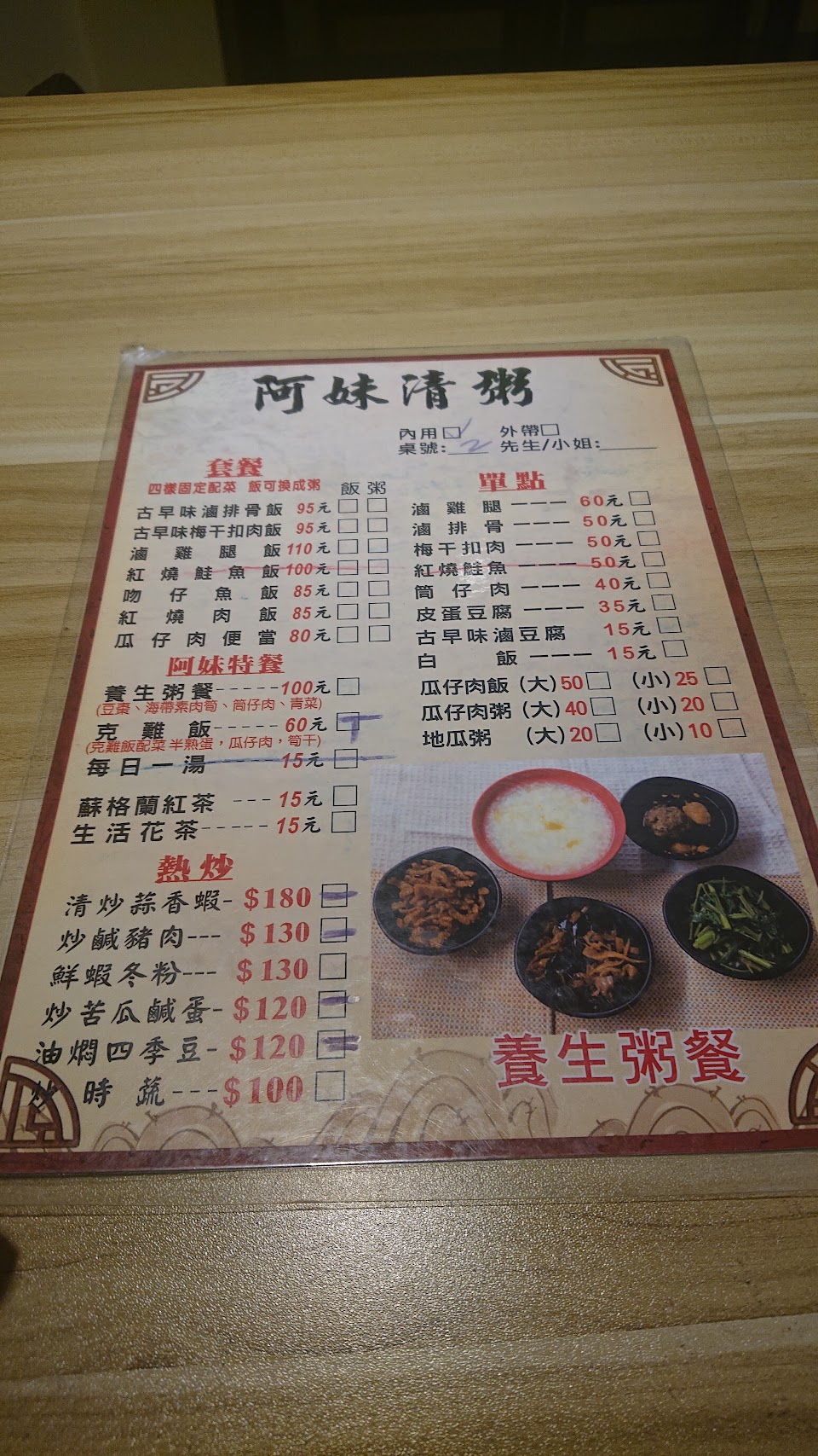 –食物好吃,價位也算合理。 –瓜仔肉粥好吃,瓜仔肉與碎菜瓜+碎地瓜或在一起,每一口都能吃到層次感豐富的口感,味道也調理得很剛好,稀飯粒亦是。 –店內燈光像咖啡廳,算氣氛不錯的清粥小菜店,不過空調上比較弱,廚房與戶外空氣皆哥倆好的在室內用餐區交融為一體。
