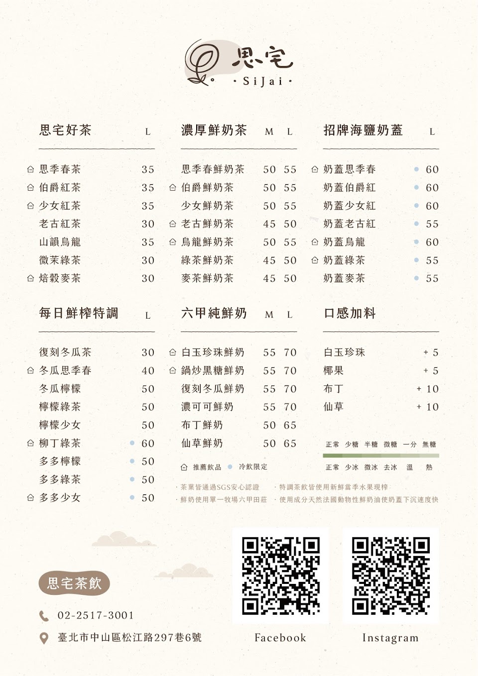 2024最新在地推薦餐廳的菜單_思宅 SI·JAI的菜單、圖片