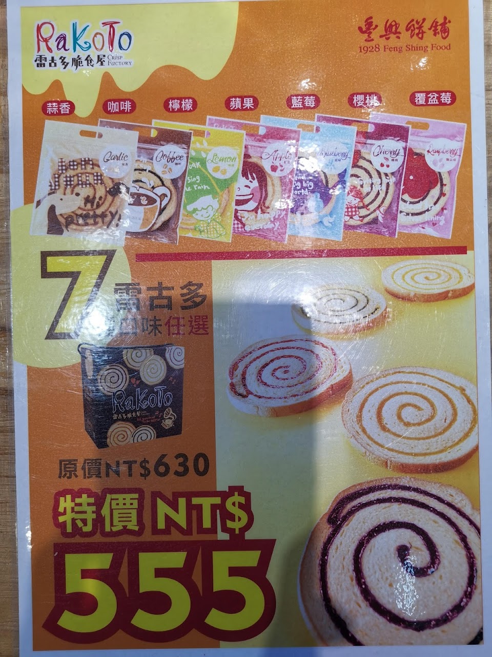 雷古多脆食屋,「雷古多」是日文 recorder 外來語發音,招牌唱片餅以黑膠唱片為創作意象,以麵包為基底,經過烘烤呈現金黃色,灑上冰晶砂糖,閃閃發亮,再將果醬以螺紋狀淋表面,做出與眾不同的外觀及酥脆口感。