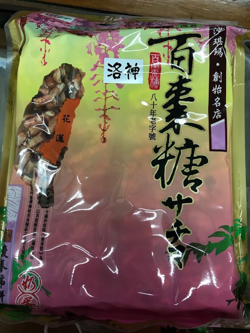在地老店,販售原味百棗糖(沙琪瑪)以外,還有洛神及小魚乾蔥花口味,十分特別。