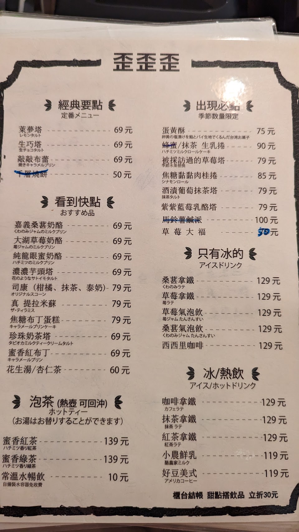 2024最新在地推薦餐廳的菜單_歪歪歪甜點 YYY Dessert – 花蓮地表最強蛋黃酥、花蓮甜點、花蓮咖啡、花蓮蜂蜜生乳捲、花蓮杏仁茶、花生酥、酥心糖的菜單、圖片
