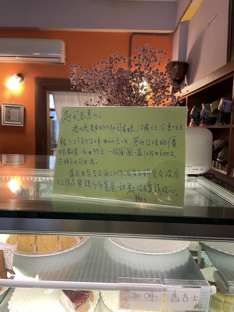 聞名而來,看評論非常兩極,實際踏入店內,的確是冷淡的應對,以服務業來說確實會讓人卻步,不過在我看著蛋糕決定要買時,老闆就似乎懂了的站在櫃前,我想大概就是因為很多客人看到琳瑯滿目的蛋糕櫃而陷入選擇障礙猶豫不決導致的吧!如果客人有的還@$&的,長久下來難免耐心…