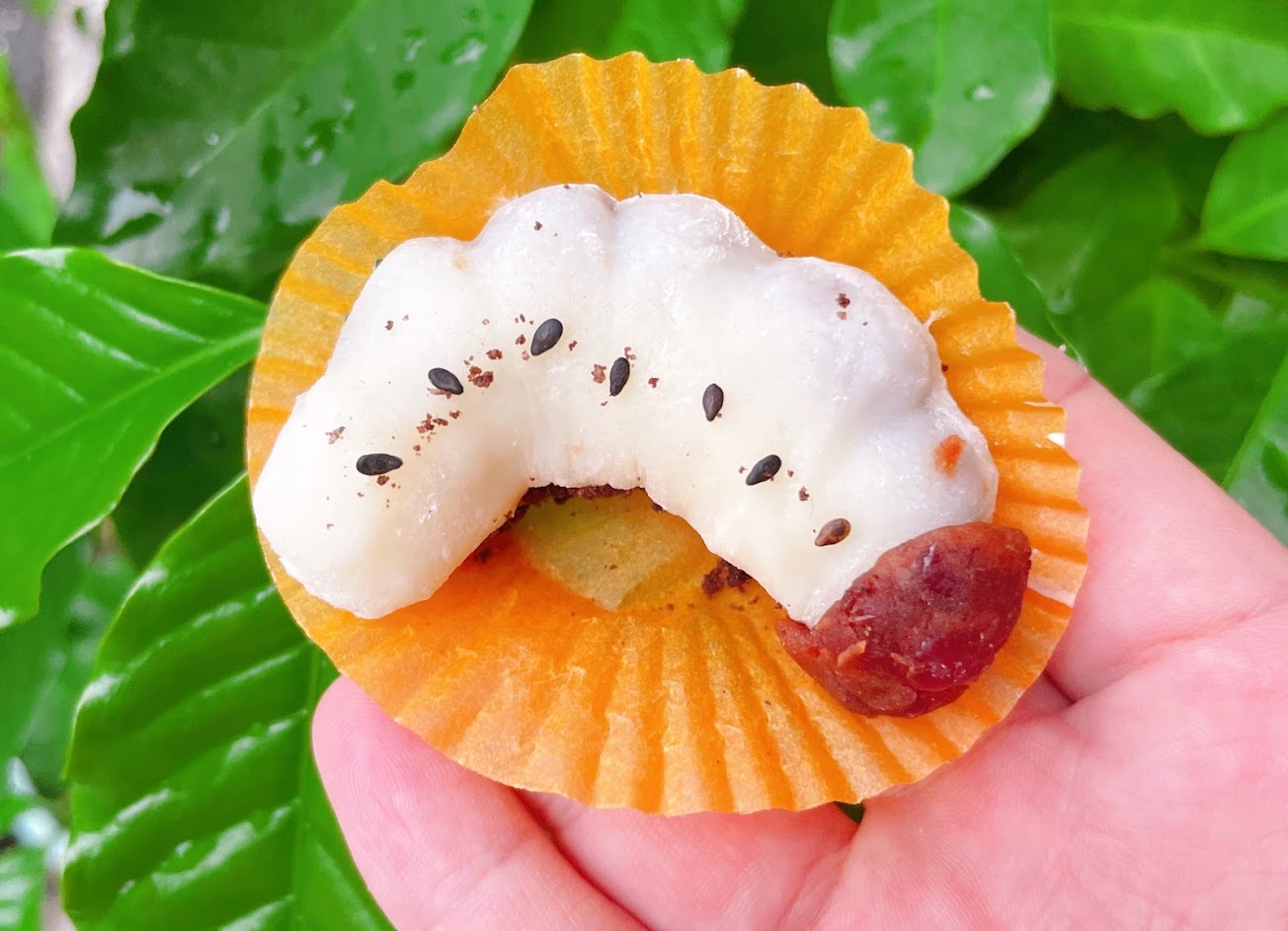 手工麻糬當身體,身體黑黑的部分是紅豆餡,在用Oreo碎片當土壤,整個很傳神欸?但整體有點偏甜,小朋友會很喜歡?