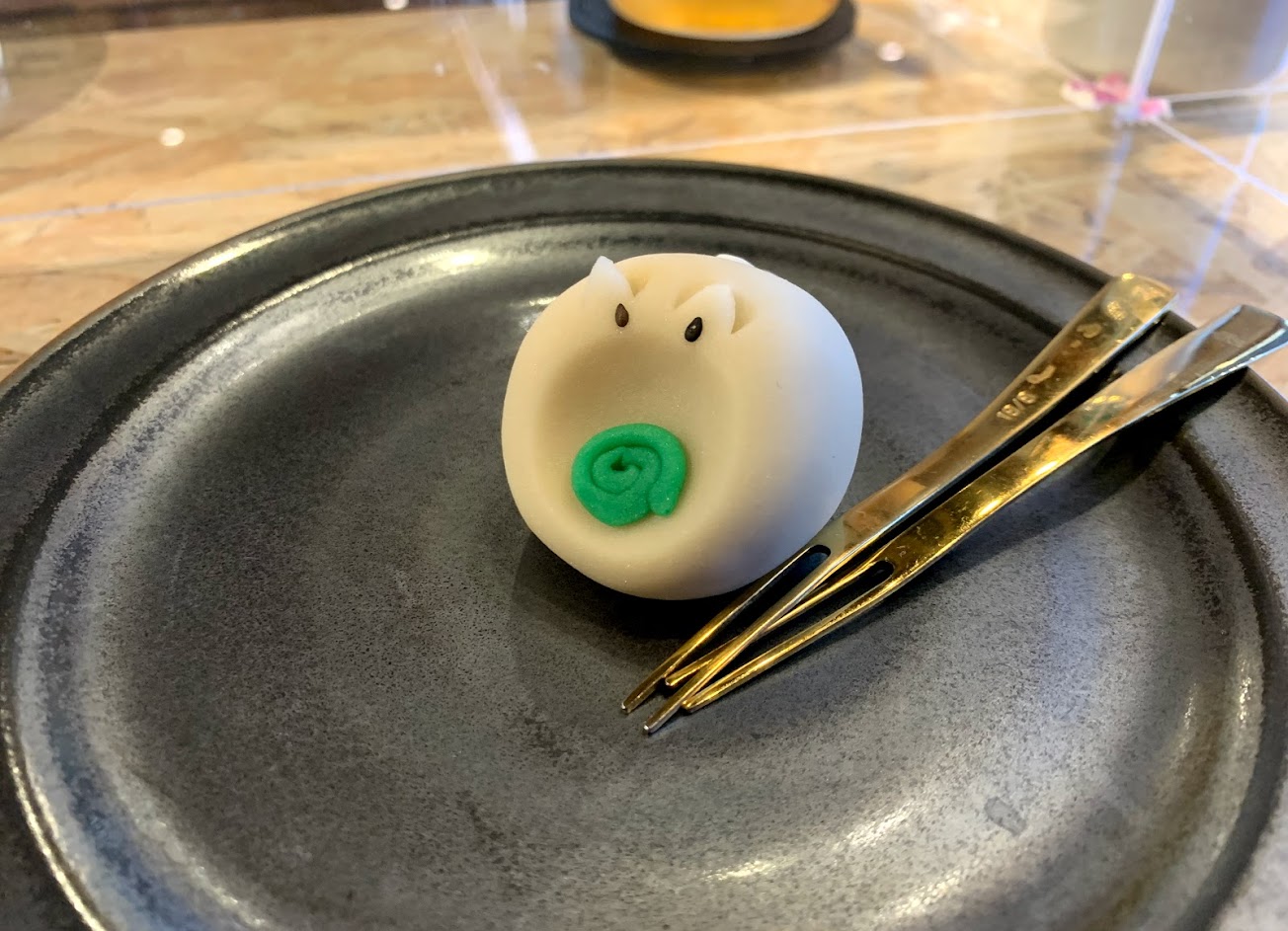 第一次吃上生菓子,漂亮到捨不得切!原本擔心豆沙會很甜,但配上內餡微苦的柚子味,味道完全剛剛好。