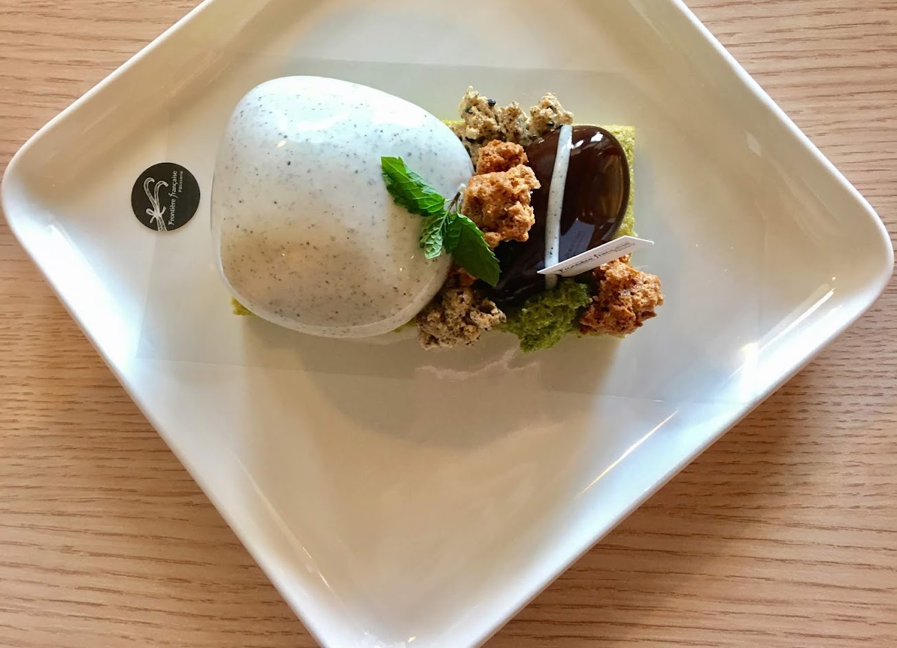 這次點的有兩款 ,柚見花香:淡淡大人味恰到好處的微苦帶出甘甜的柚子慕斯內搭同樣也是大人味抹茶慕斯巧妙搭配酥脆的塔皮,很有季節感的特色甜點。以及踏青 好似花蓮美麗的花崗石是由黑白芝麻慕斯內含驚喜的初戀酸甜的檸檬慕斯組合而成,飾在茶香基底的海綿蛋糕的擬草皮,喔喔還有個特別的薄荷慕斯巧以鏡面巧克力裝飾,還有好吃的芝麻,黑糖脆餅,兼具巧思和美感的甜點非常令我和家人都很開心的擁有一個美好的下午茶時光。店員們也都很親切;對面就是停車場好停車。