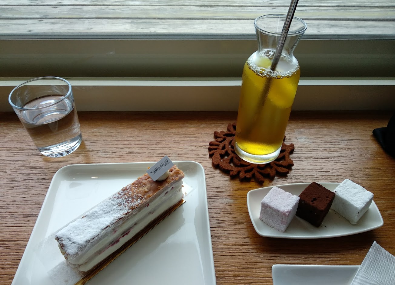 微苦的拿鐵配上甜蜜的千層;完美無瑕。或許花蓮偏低的薪資,讓服務少了笑容,沒有溫度的高級甜點精品店…大概就是這樣吧? …