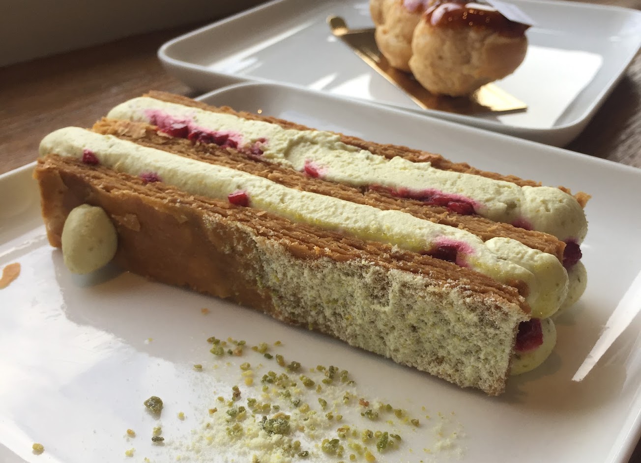 店員推薦的好吃品項:? #開心果覆盆子千層 酥脆的千層口感,搭配酸甜內餡 整體不過於甜膩,列入再訪清單 …
