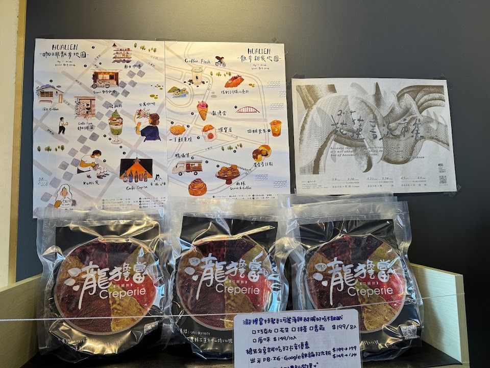 去花蓮玩,很喜歡吃可麗餅,但第一次買了這家冰淇淋可麗餅,餅皮不是巨無霸有點失望,然後菜單上價位不一樣,老闆說菜單價格還沒改(不知道是不是看我們外地來的故意漲價)當下不想打壞遊玩興緻還是買單了。吃完覺得普通,沒有想像中驚艷