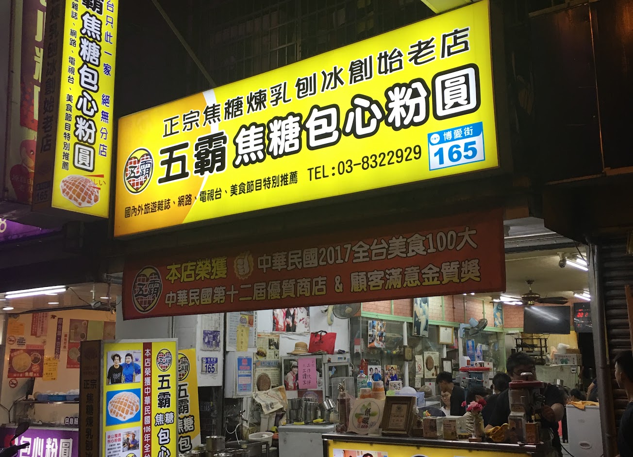 招牌五霸焦糖包心粉圓冰造型可愛,內容配料多樣,刨冰淋上微苦焦糖與煉乳香甜搭配適中,服務態度佳,值得一嚐