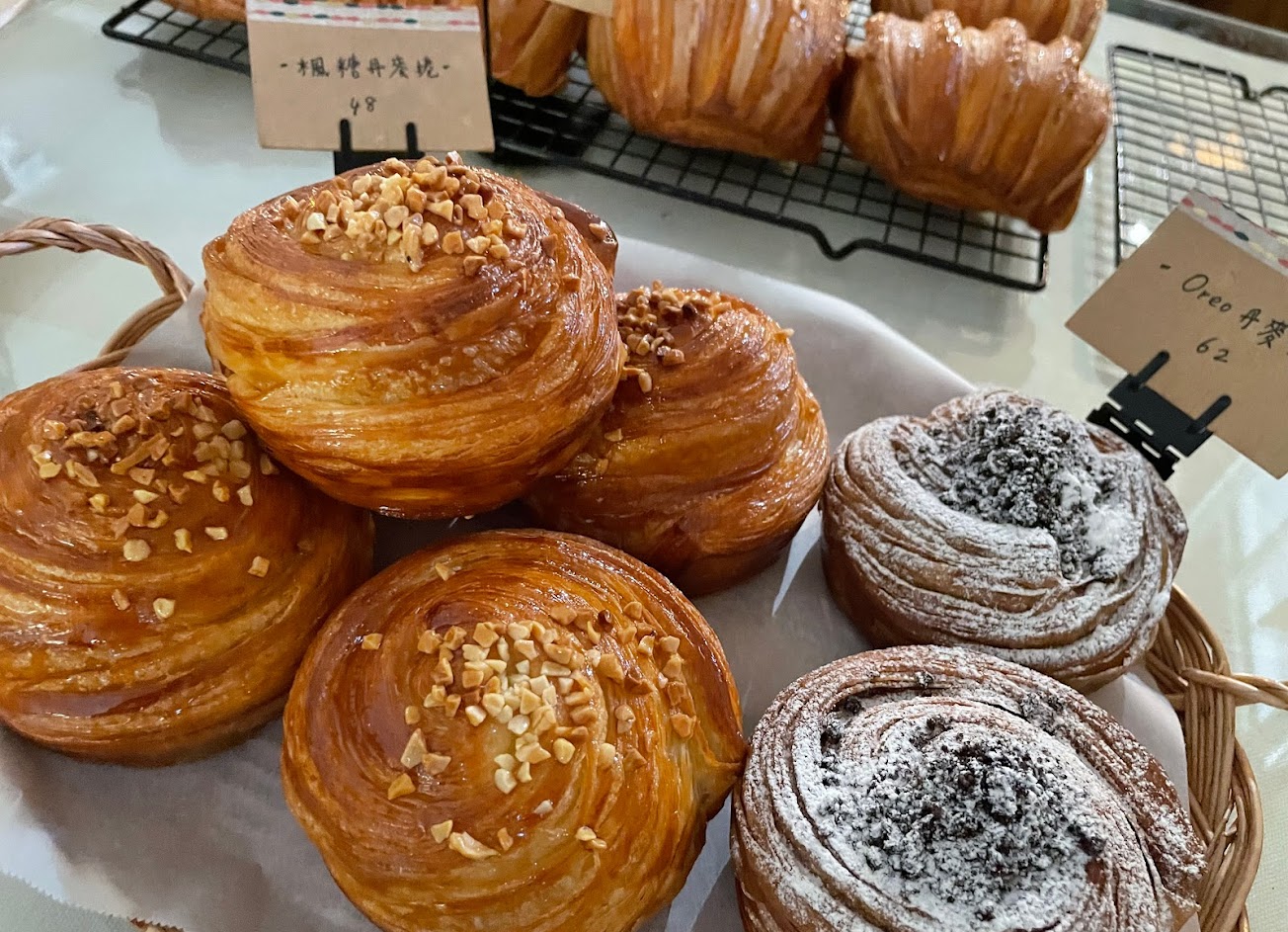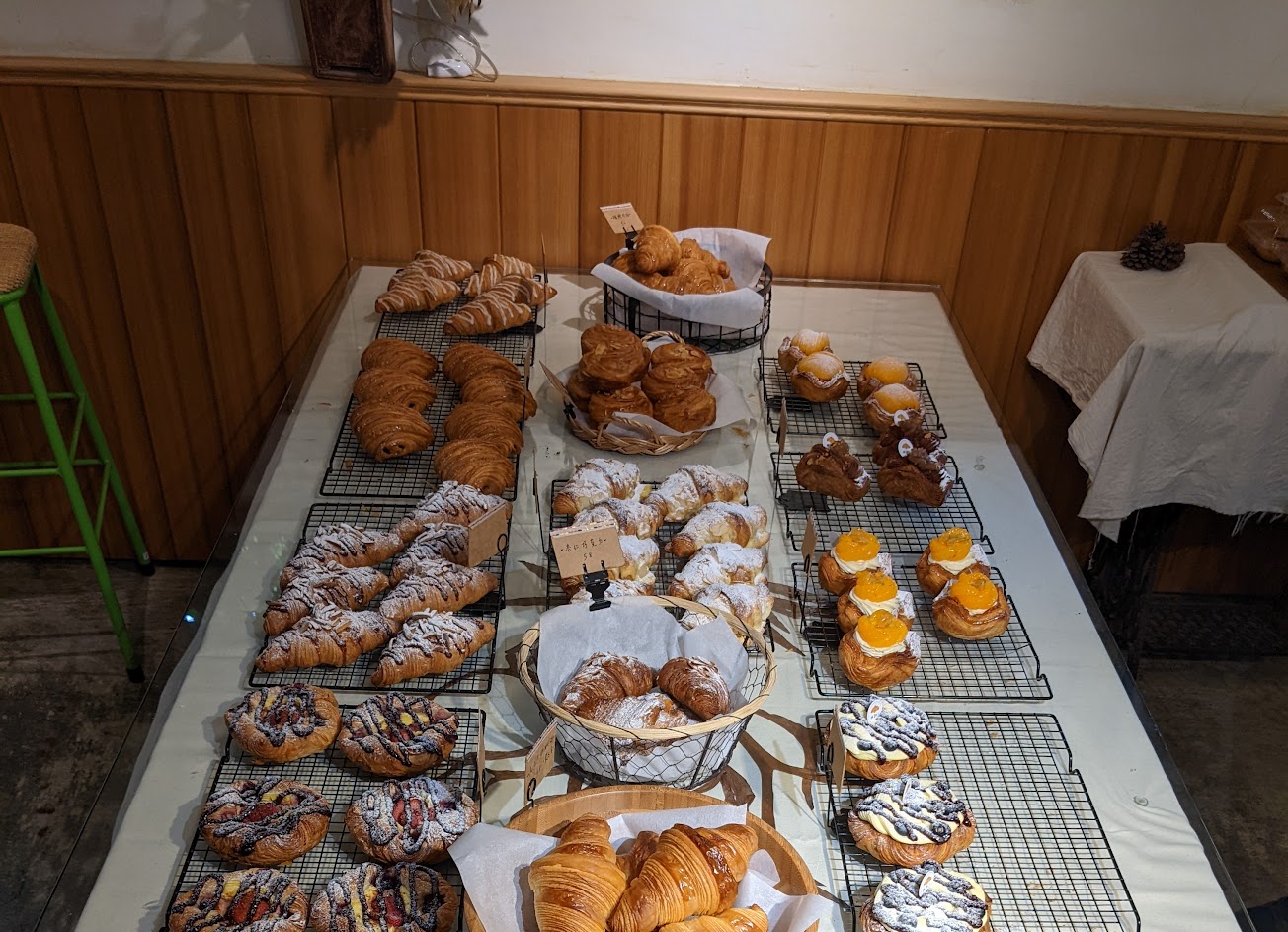 各式各樣的可頌,可以吃看看。開門前就去排隊會比較好,若在外面排隊,會有很多蚊子要特別注意,現場也有防蚊液可以給排隊的客人使用,算滿貼心的? …