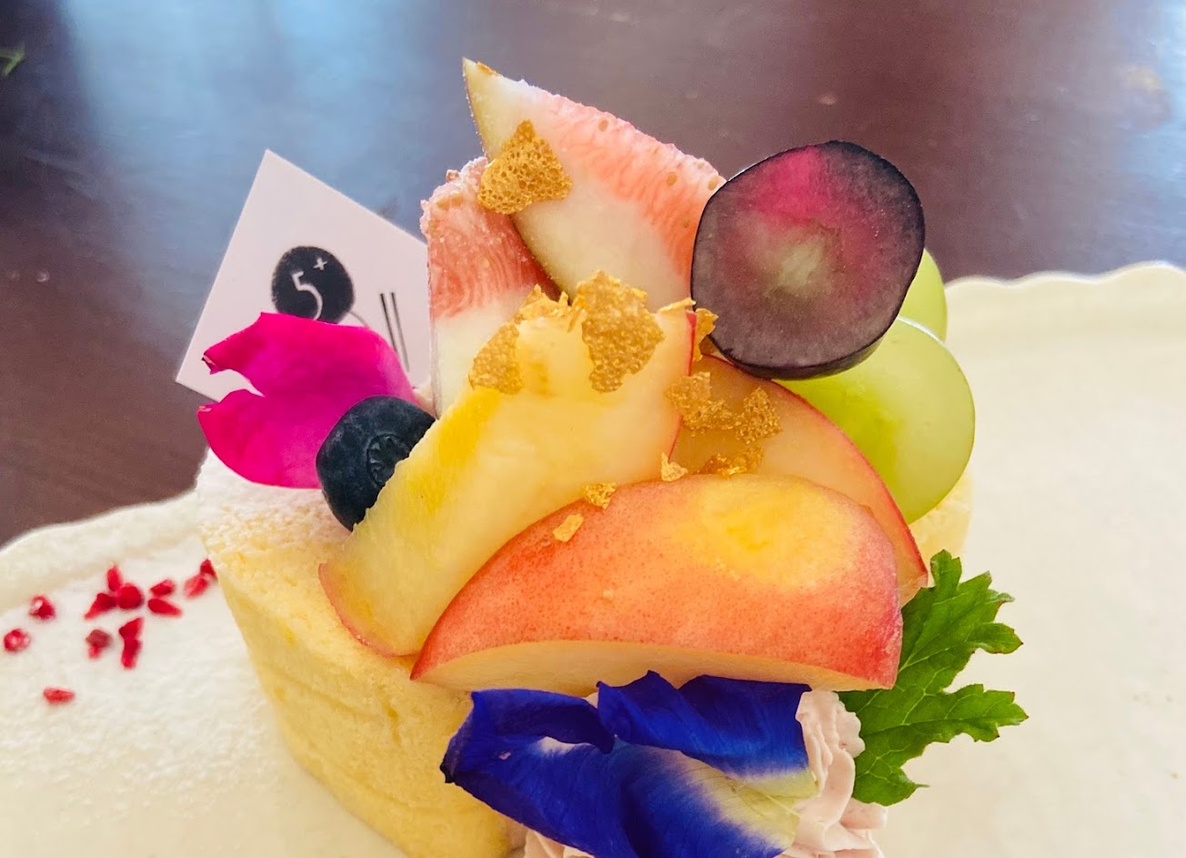 蛋糕上的水果、花都朋友種的,可惜賣完的芝麻藍莓無花果戚風捲,聽到隔壁桌介紹時芝麻也是朋友自產的…