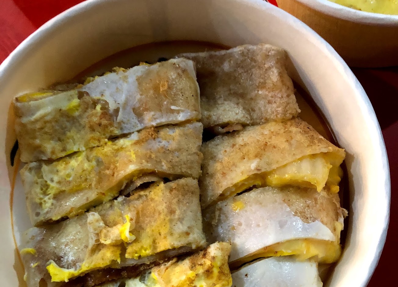 我點的是起司貢丸雙蛋 第一次看到有人在蛋餅裡面加貢丸 吃起來無違和 起司濃郁也很搭 驚艷的是上面的醬 好像有蜂蜜 鹹甜中還有甘爽 很推
