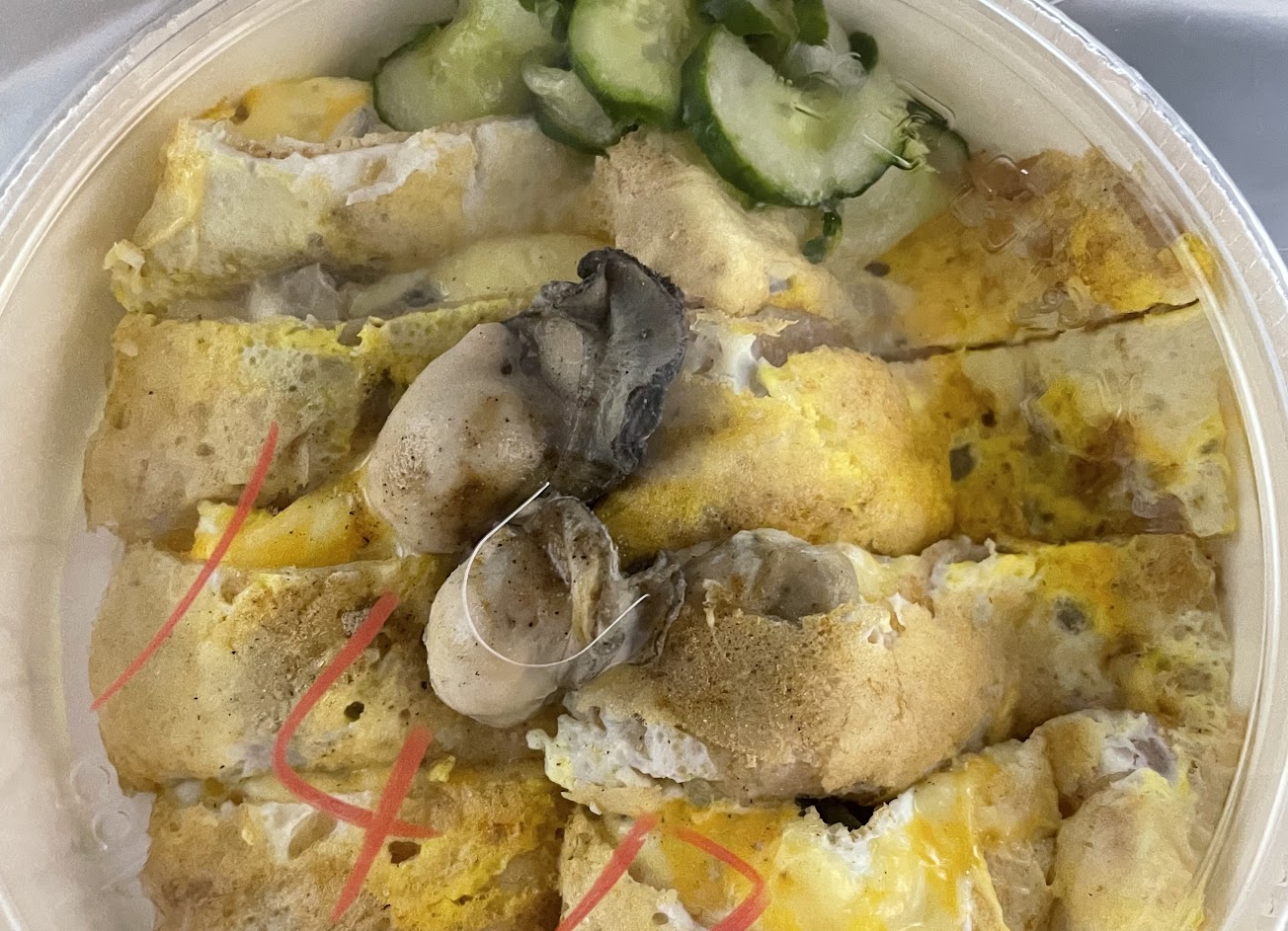吃起來很像蚵仔煎,蚵阿很大顆