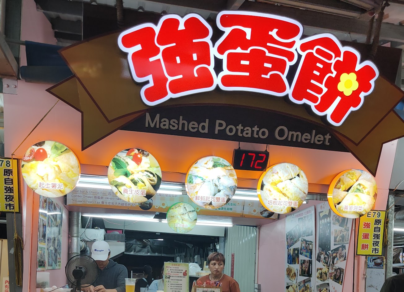 有些口味比較搶手,像鮮蚵起司等,晚一些就賣完了,經典口味就是強蛋餅,起司、火腿、泡菜加九層塔風味,別的地方可能就吃不到這麼嗆辣的口味⋯⋯