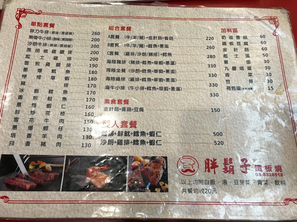 2024最新在地推薦餐廳的菜單_胖鬍子鐵板燒的菜單、圖片