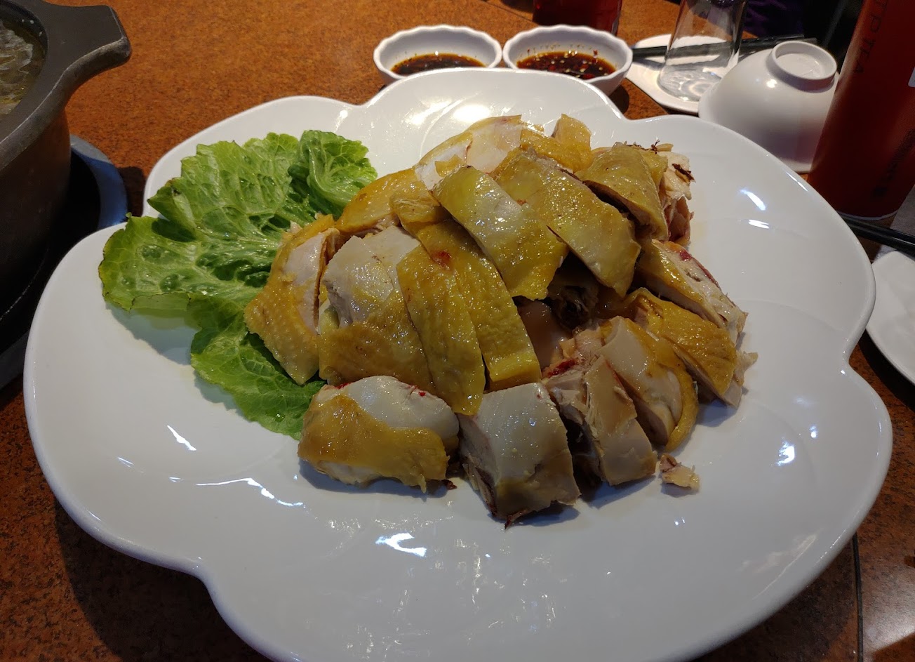 白斬雞很棒!第一次看到湯鍋放在正中央,圓桌轉盤轉動,湯鍋不會動,底下還有瓦斯爐的設計。