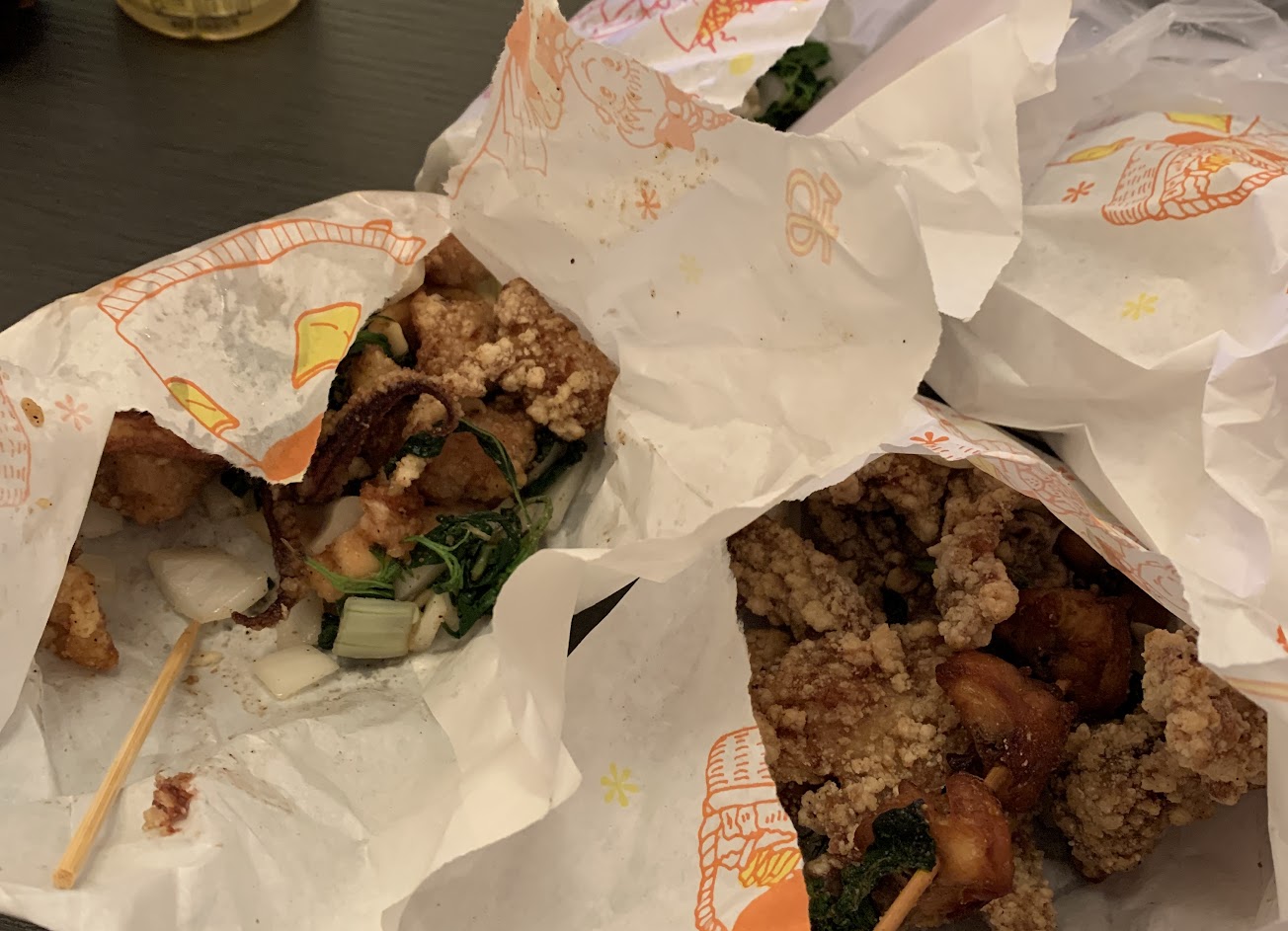 10/02現場點餐,等待時間約30分鐘,魷魚新鮮好吃,雞肉乾爽好吃;雞皮CP值高,算好吃的鹹酥雞。