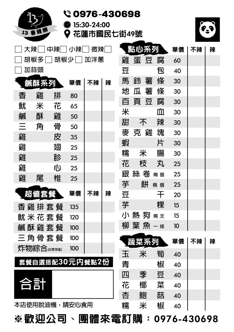 2024最新在地推薦餐廳的菜單_13香雞排的菜單、圖片