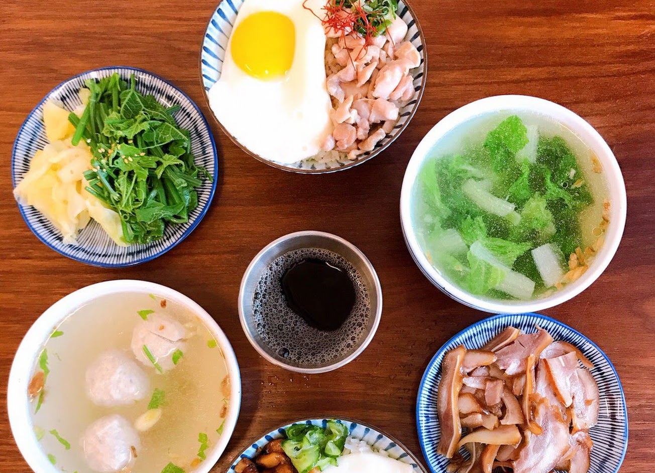 想了很久終於可以來吃這間店,生意很好,翻桌率很高,東西也不貴,店員態度又好,小菜一盤只要30元,一次拿很多也不怕,皮蛋豆腐是配肉鬆吃,覺得很新鮮,如果點蔬菜類還能加醬喔!豬頭皮也很入味,我點了蔥油雞飯加蛋,蛋的顏色很漂亮,讓人很有食慾,醬汁有點鹹,所以吃一整碗都不無聊,上面灑上一些辣椒絲,增添美感,上面也有不少肉塊,覺得蠻划算的,湯的部分也很大一碗,女生可以點一碗兩個人喝,紅茶20元就能無限暢飲唷!店裡的裝潢還蠻復古的,而且人潮絡繹不絕,難怪評價很高!