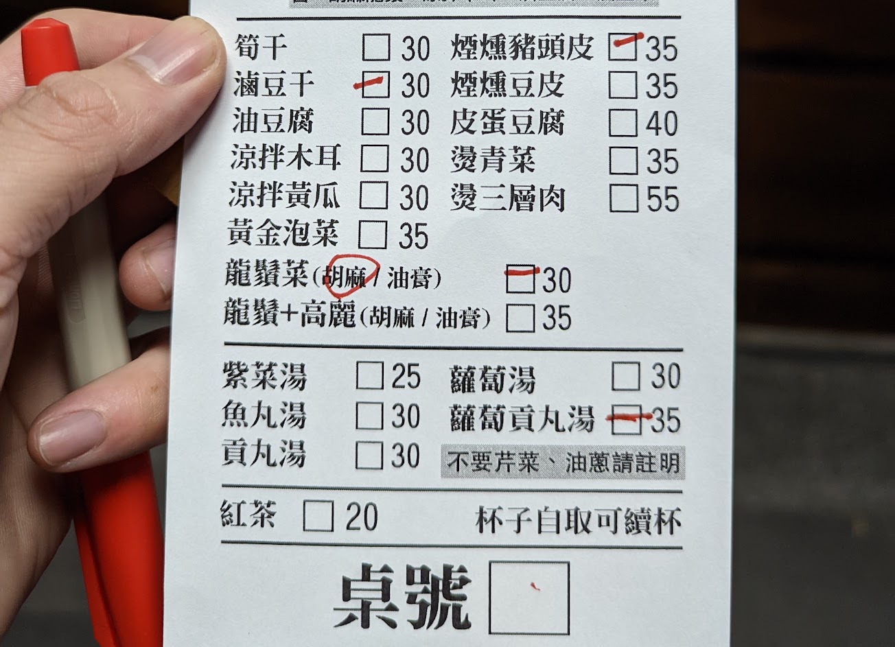 晚餐時間人很多但是翻桌率很快,一下就輪到我們了,點了蔥油雞飯 紫菜湯 蘿蔔貢丸湯 燙空心菜 木耳 豆皮 筍干一般小吃都沒有雷,因為臨時還有續攤剩下一半沒吃很可惜,再找一天來好好吃一頓。