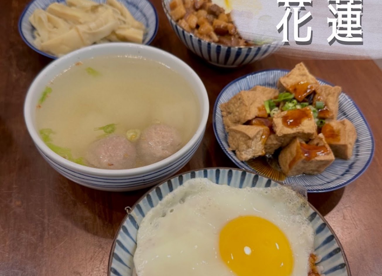 太喜歡這家了!每次來花蓮必定會吃上一碗滷肉飯+半熟蛋,湯都沒加味精,原汁原味,超讚!大推!