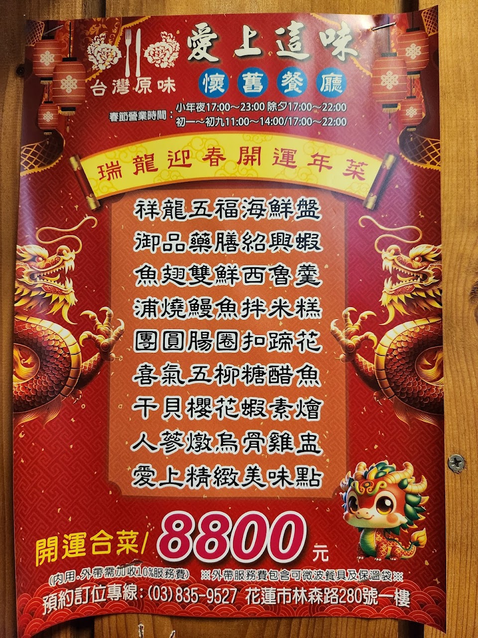 花蓮人氣美食愛上這味懷舊餐廳,這次到訪是在疫情後來的,花蓮很多餐廳都撐不過這波疫情倒閉,剛好看到這裡有一間開到很晚的餐廳,趕快來吃吃看,位於東大門夜市附近,我這次是先去夜市找不到想吃的菜過來用餐 店內裝潢懷舊復古,也放一些70年代經典歌曲,很特別! 餐點上價格雖然偏高,但整體的精緻度是可以接受的。 西魯肉是比較偏鹹的口感,很適合配飯吃! 服務 內用 餐點類型 晚餐 平均每人消費金額 $400-600