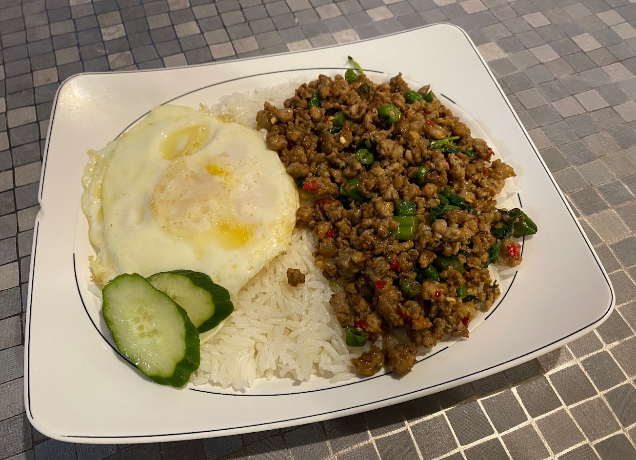 打拋豬真的是招牌,雖然你會納悶自己幹嘛來是泰國絞肉飯,但是調味後味的魚露風味,甜甜口味的絞肉,搭類脆脆甜甜的洋蔥、九層塔香氣。